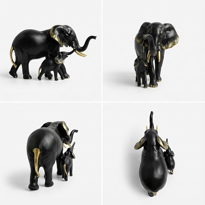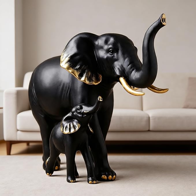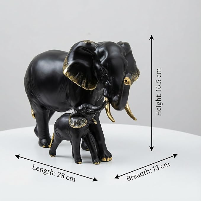 • Premium Black & Gold Finish – Elegant matte black body with refined gold highlights on ears, tusks, and feet adds a luxurious and modern décor touch